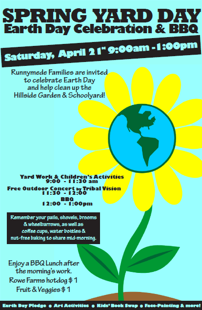 Runnymede’s Spring Yard Day and Earth Day Celebration is on Saturday, April 21 from 9:00 a.m. to 1:00 p.m.