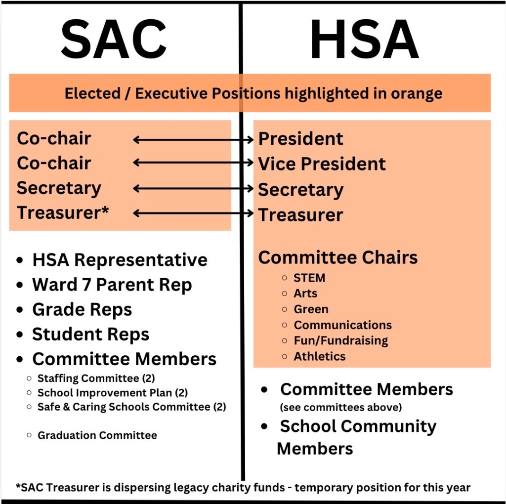 The Executive team and the 6 main committees (STEM, ARTS, GREEN, COMMUNICATIONS, FUN & FUNDRAISING, and ATHLETICS) that facilitate the enrichment & fundraising activities, also moved to the HSA.