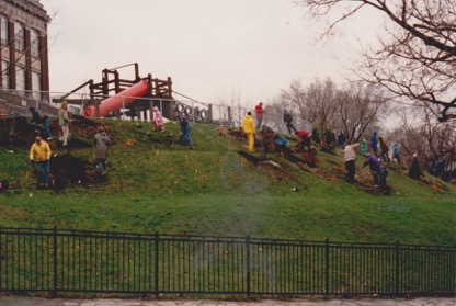The entire forest area used to be a steep, grassy slope that was closed-off to the schoolyard because it was too steep and difficult to maintain.