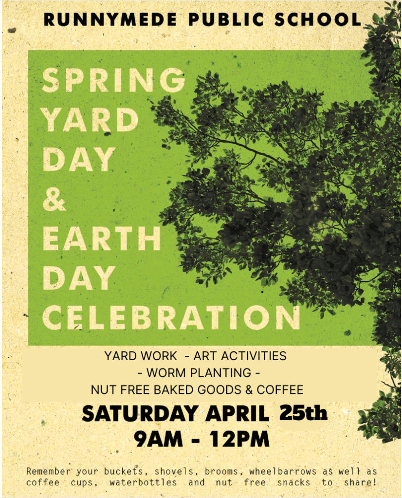 Yard work for the whole family to have fun, and help keep the Runnymede yard and playgrounds amazing and beautiful!